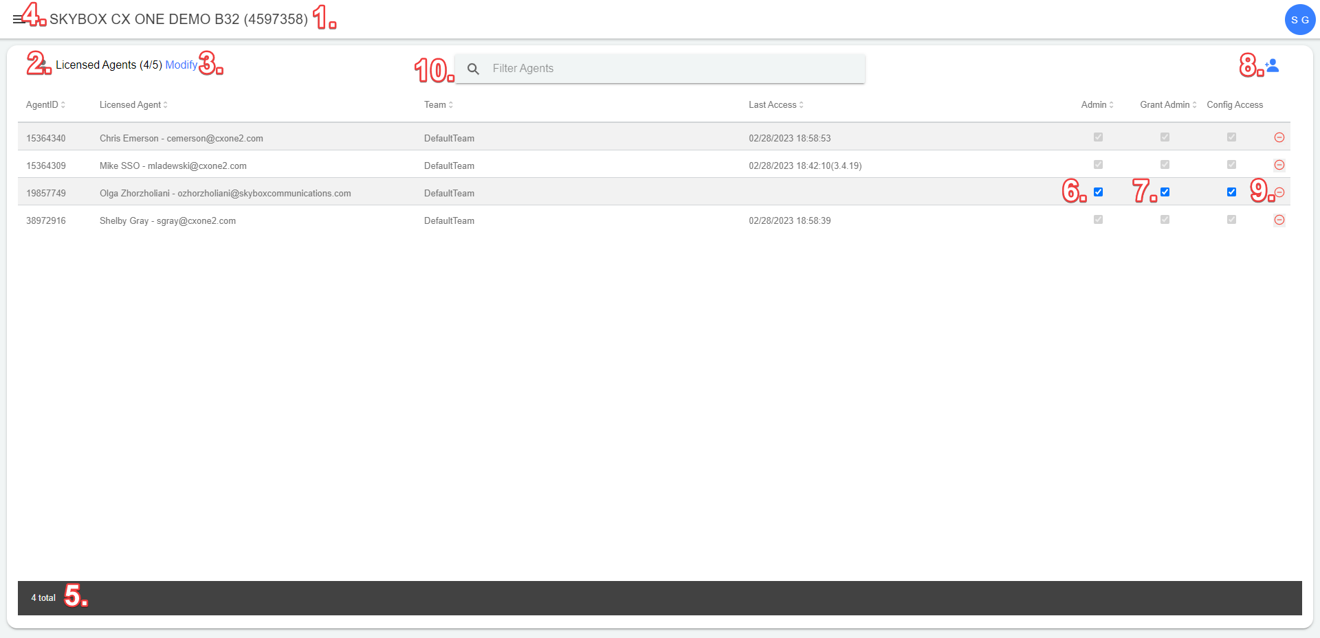 | Add License Users Button (8) | Launches the Add License Users screen to provision new agents. |
