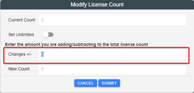 Modifying the license count will affect your billing. Customers are billed for the maximum number of licenses configured during the calendar month.