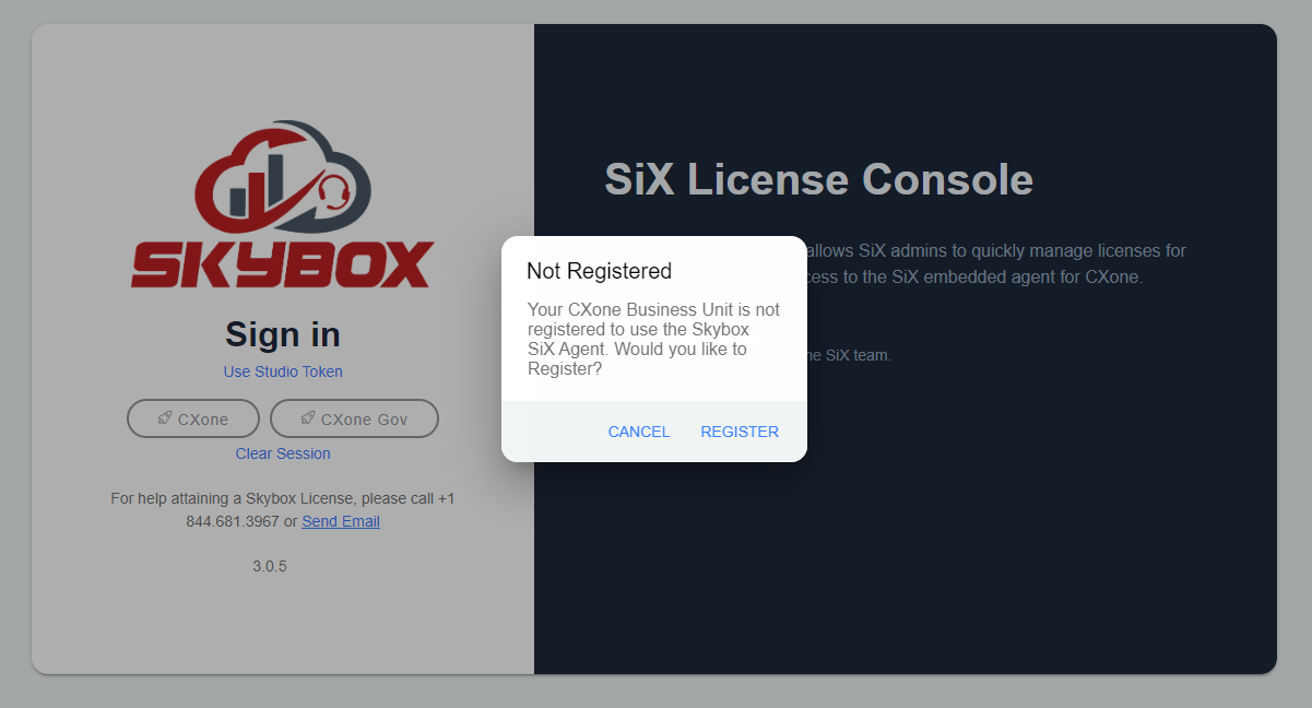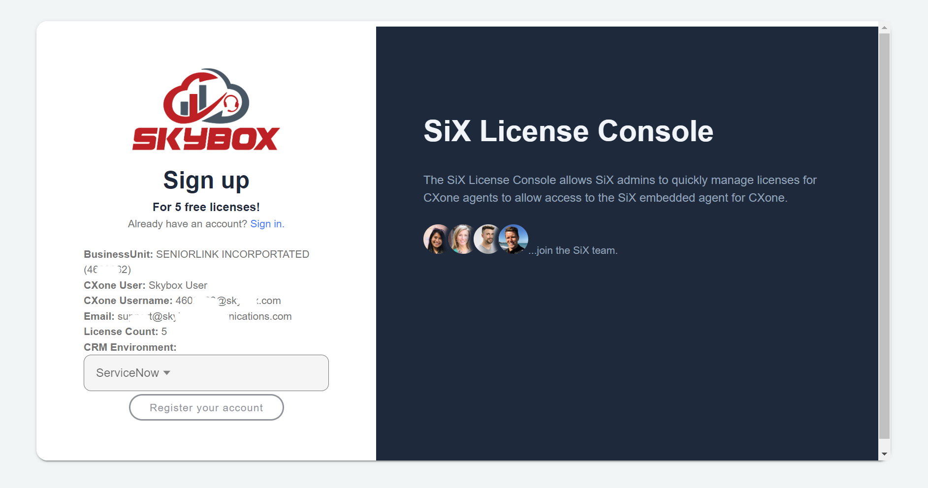 The SiX product comes with 5 free licenses. Anything above 5 requires a contract with your contact center provider. Once the BU is flagged as LIVE by Skybox, you can modify the license count in the License Console.