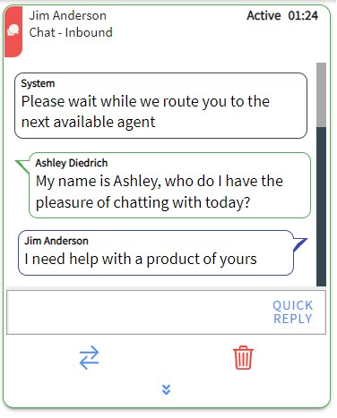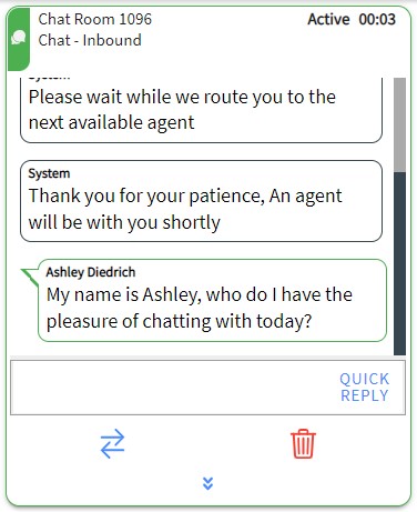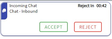 An agent has 45 seconds to accept an incoming chat request. If not accepted within this time, or if you click REJECT, the chat is returned to the skill queue, and your state is changed to Refused.