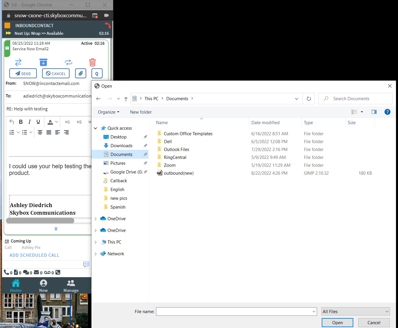 Choose the file you wish to attach and click Open. The file will appear in the attachment section of the email.