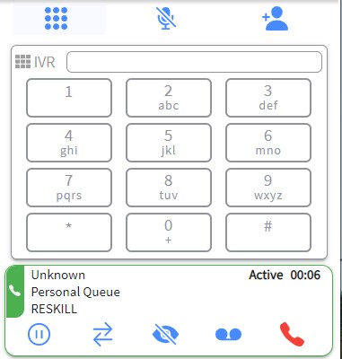 The IVR Dial Pad is used to input keypad tones (DTMF) during an active call, such as when navigating an external automated phone menu.