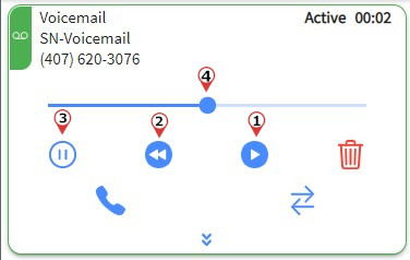 When a voicemail is delivered to your interface, it will play automatically. You can control the playback using the on-screen controls.